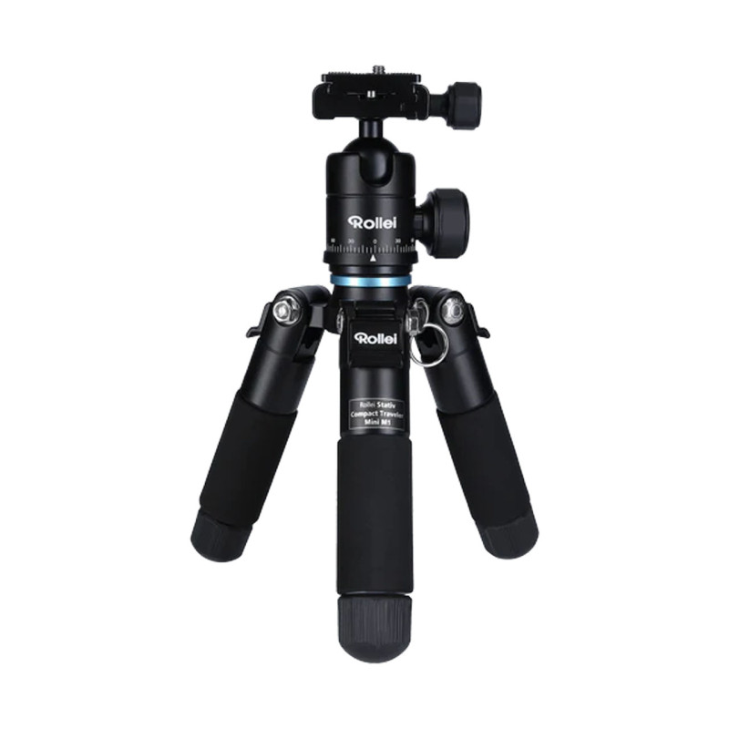 Avec le Mini Trépied Compact Traveler Mini M-1 (, combinez les avantages d'un trépied de voyage avec la capacité de charge d'un trépied adulte. Fabriqué en aluminium léger, il ne pèse que 800 grammes avec la tête de trépied. Les jambes se composent chacune de cinq segments et peuvent donc être utilisées sur un Taille de paquet de 16 cm poussez ensemble Rollei M1 Mini est à peine plus grand que la paume de votre main. Hauteur de travail entre 16 et 42,5 cm , idéal pour la macrophotographie, mais aussi pour poser votre appareil photo sur des murs, un rebord de fenêtre ou un toit de voiture pour des photos de nuit, des photos de groupe avec retardateur ou des panoramas. Cela porte au moins 8 kgRollei M-1 Mini , qui est également suffisant pour un appareil photo reflex mono-objectif avec un grand objectif